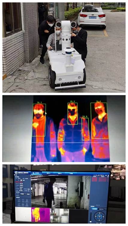 针对社区疫情防控需要,园区企业研发的社区智能安防巡检机器人,可用于移动人体测温与车辆识别,已应用于广东、广西等地防疫工作。