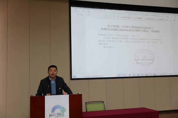 会议邀请中共四川省委党校副教授郑妮专题讲解了《中华人民共和国公职人员政务处分法》。中心办公室和纪检监察室负责同志分别就《院职工及相关亲属经商办企业管理暂行规定》和《院纪检监察案情通报》作了传达宣贯。