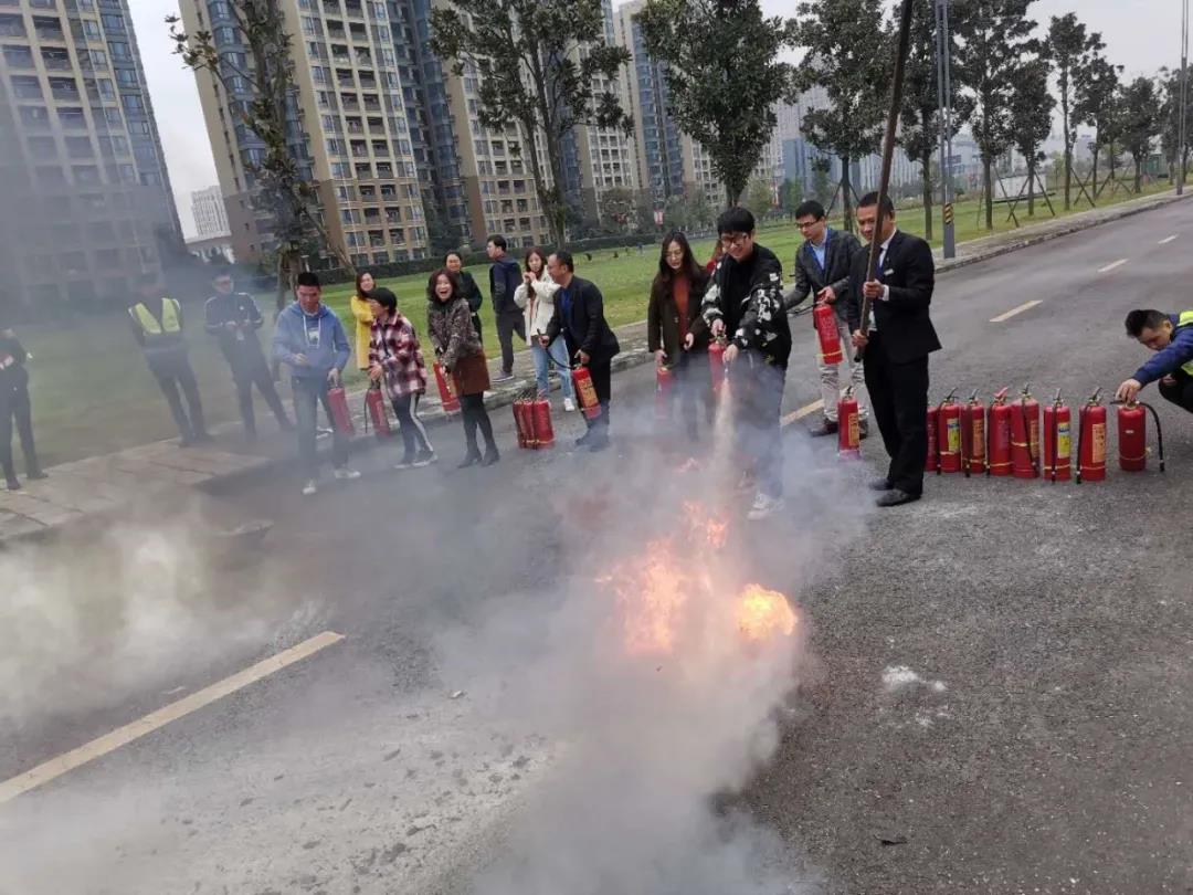 成都利民消防宣教中心从消防基本常识、消防器材正确使用方法、火灾案例分析、火灾逃生和人员疏散等进行了讲解分析。随后,参训人员到现场体验了灭火器的实操演练。