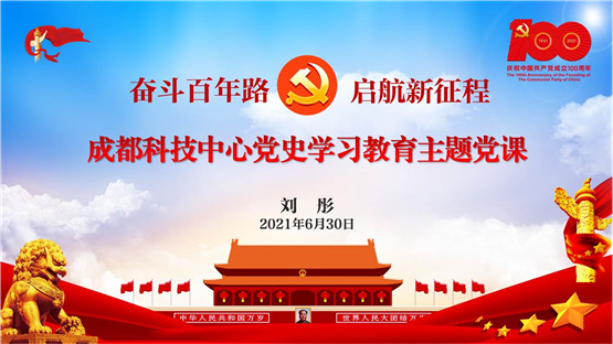 在中国共产党百年华诞即将到来之际,6月30日上午,成都科技中心党委举行庆祝中国共产党成立100周年表彰会暨党委书记讲专题党课活动,以重温入党誓词、表彰先进、聆听专题党课的方式,热烈庆祝中国共产党成立100周年。中心党委委员、纪委书记、副主任刘永华主持会议。