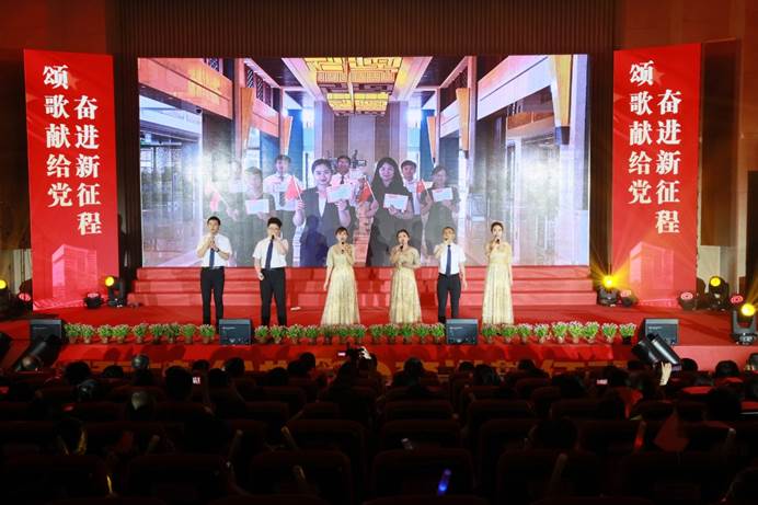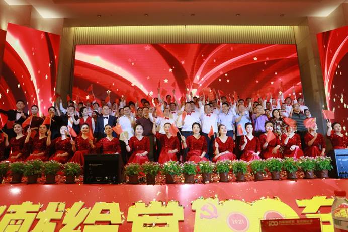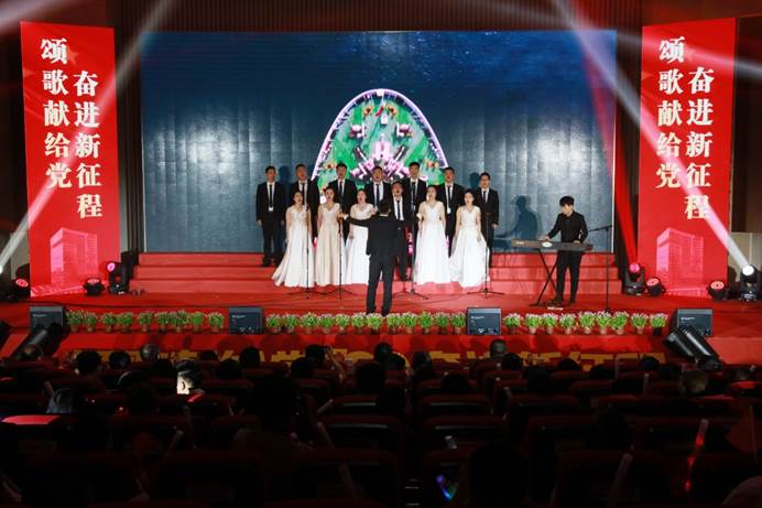 为庆祝中国共产党成立100周年,讴歌党的丰功伟绩,深情表达对党的无限热爱和美好祝福,6月29日晚,由成科中心党委主办、工会协办的“庆祝中国共产党成立100周年园区歌咏晚会”在银河·云瑞酒店隆重举行,来自园区各入驻单位的领导、代表、演职人员和观众近400人欢聚一堂。