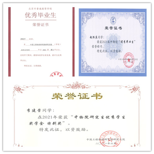 近日,成科中心多名研究生和导师获得北京市教委和中物院研究生院的嘉奖: