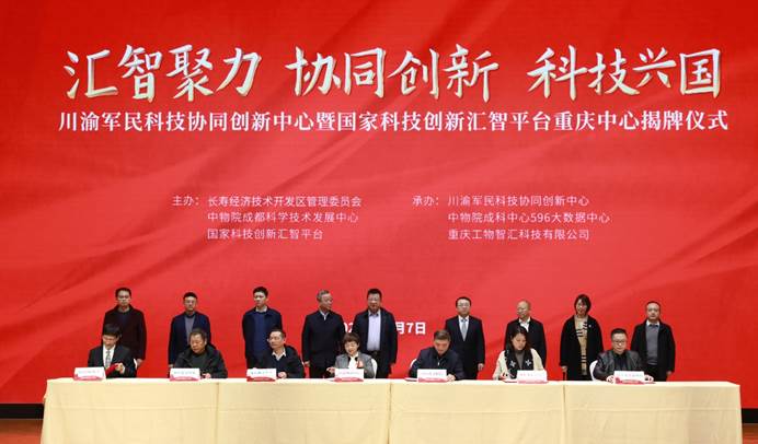 12月7日,由长寿经开区管委会、中物院成科中心、科技创新汇智平台联合主办的川渝科技协同创新中心暨科技创新汇智平台重庆中心(以下简称川渝创新中心)揭牌仪式在长寿经开区科技创新园举行。中物院成科中心党委书记、主任刘彤,长寿经开区党工委副书记、管委会主任宋平,重庆市委融办二级巡视员杨金河及四川省委融办、重庆市科技局相关领导出席会议。科技创新汇智平台首席专家、西南科技大学副校长、川渝科技协同创新中心理事长曾刚主持揭牌仪式,长寿区、长寿经开区相关部门及30余家企业代表参加。