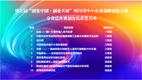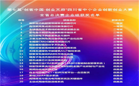 由四川省经济和信息化厅、四川省财政厅主办,四川省教育厅、国家税务总局四川省税务局、人民银行成都分行、四川证监局联办的第七届“创客中国·创业天府”四川省中小企业创新创业大赛全省总决赛(企业组及创客组)于近日圆满收官。