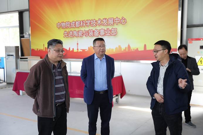 赵小东一行先后参观了中心先进陶瓷材料中试基地、压电陶瓷氮氧传感器中试基地、新一代通信事业部、特种电源项目组、自主可控事业部,并就相关技术成果及应用进行了互动交流。
