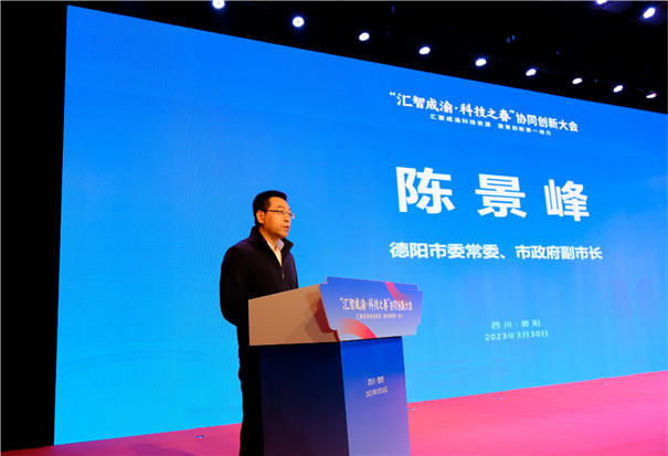 陈景峰发表了热情洋溢的致辞,指出汇智平台德阳中心已正式运营,在争取科技项目、汇聚多领域专家人才等方面取得阶段性成效,有力推动成德绵协同创新共同体建设,融合创新成果丰硕。期待川渝两地在创新资源共通共用、创新平台共建共享、创新成果精准对接等方面开启更多新的合作。