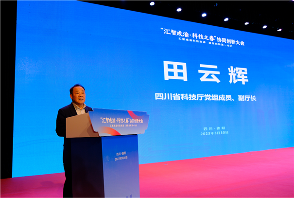 3月30日,由四川省科技厅、重庆市科技局指导,德阳市人民政府、长寿经济技术开发区管理委员会、科技创新汇智平台(以下简称汇智平台)、中物院成都科学技术发展中心主办,德阳市科学技术局、德阳经济技术开发区管理委员会、科技创新汇智平台德阳中心、科技创新汇智平台重庆中心、四川工程职业技术学院承办的“汇智成渝·科技之春”协同创新大会在四川工程职业技术学院顺利举行。