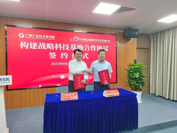 9月13日上午,成科中心与广西产业技术研究院在南宁举行工作座谈,成科中心党委书记、主任刘彤与广西自治区科技厅党组书记、厅长,广西产业技术研究院党委书记李国忠共同签署了构建战略科技基地合作协议。自治区发改委党组成员、副主任杨京凯,自治区科技厅党组成员、副厅长蹇兴超等出席本次活动。
