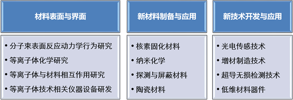 先进材料研究中心拥有首席科学家2人,国家青年人才专家2人,所一级特聘研究员3人,是一支专业基础扎实、理论水平高、经验丰富的科研队伍。中心科研集中于材料表面与界面、新材料制备与应用、新技术开发与应用三个方向。材料表面与界面方向主要开展原子分子及等离子体与固体材料表面相互作用微观动力学机制、等离子体化学、核聚变等离子体包层材料等基础研究。新材料制备与应用方向致力于核素固化材料、重金属及放射性核素检测材料、辐射探测与屏蔽材料、先进结构与功能陶瓷材料等的研发和应用;新技术开发与应用方向定位于面向国家和院所战略需求,采用试验与模拟相结合的手段,着重开发光电传感、增材制造、超导无损检测、低维纳米器件等技术,促进科研成果转化。