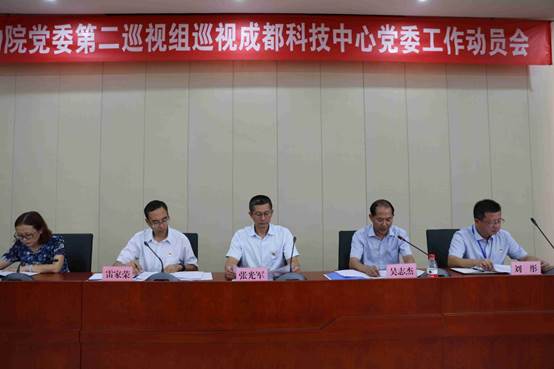 2018年9月4日,院党委第二巡视组召开了巡视成都科技中心(以下简称中心)党委工作动员会。院党委副书记、院党委巡视工作领导小组副组长张光军同志,院党委巡视办主任、院党风廉政局局长、院党委第二巡视组组长吴志杰同志,副组长焦阳同志及巡视组全体成员,中心党委领导班子成员、所属党支部书记、各部门负责人出席会议,中心机关全体职工、中心所属公司和科研团队部分党员职工代表列席会议。中心党委副书记雷家荣同志主持会议。