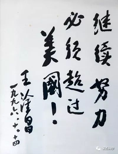 大师虽去,风范永存。他一笔一画的题词是:“继续努力,必须超过美国。”