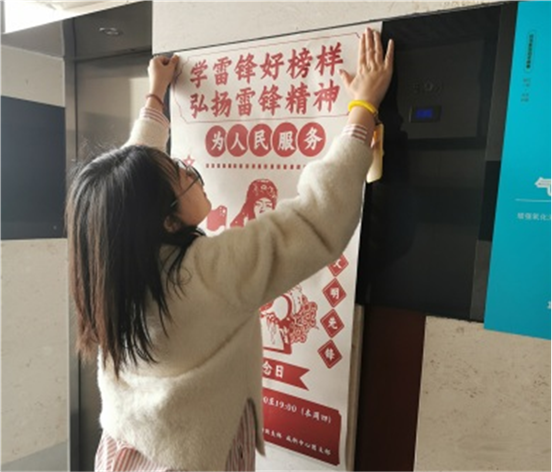 为了扩大活动影响面,使更多的人参与到学雷锋活动中来,团支部提前张贴了宣传海报,为活动的顺利开展营造了良好的氛围。