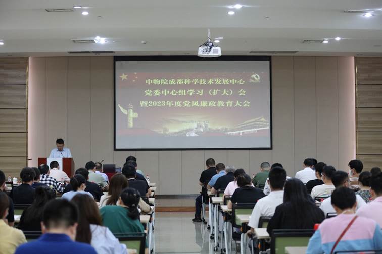 为了深入贯彻落实主题教育和干部教育整顿工作关于“针对性开展全面从严治党、推进党的自我革命、党规党纪等方面专题学习”的工作要求,6月14日,成科中心党委举行中心组学习(扩大)暨党风廉政教育大会,邀请院党风廉政办公室主任、院巡视办公室主任、机关纪委书记吕涛同志上党风廉政专题党课。会议由中心党委委员、副主任、纪委书记曾刚主持。中心党委领导班子成员、中层干部及全体干部职工130余人参加了会议。