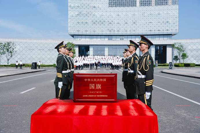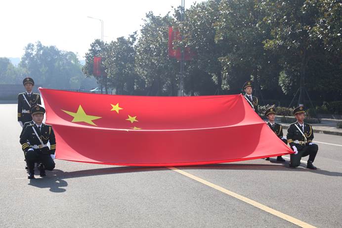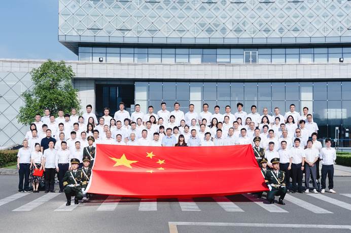 全体人员怀着崇敬的心情与这面意义非凡的国旗合影留念,以此致敬在生命的最后一段时光依然拖着病重的身躯到天安门广场看一看五星红旗的邓稼先老院长。