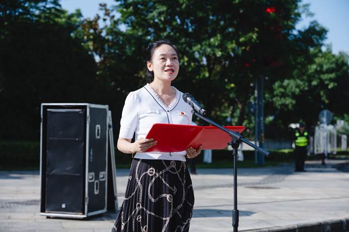 院政治部宣传处处长李倩珉同志饱含深情的介绍了这面珍贵国旗的获赠背景,让大家深切感受到了这面国旗对我院的重要意义。