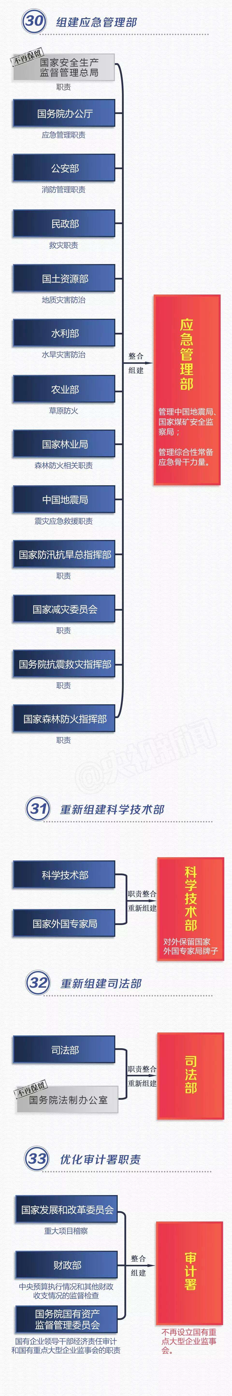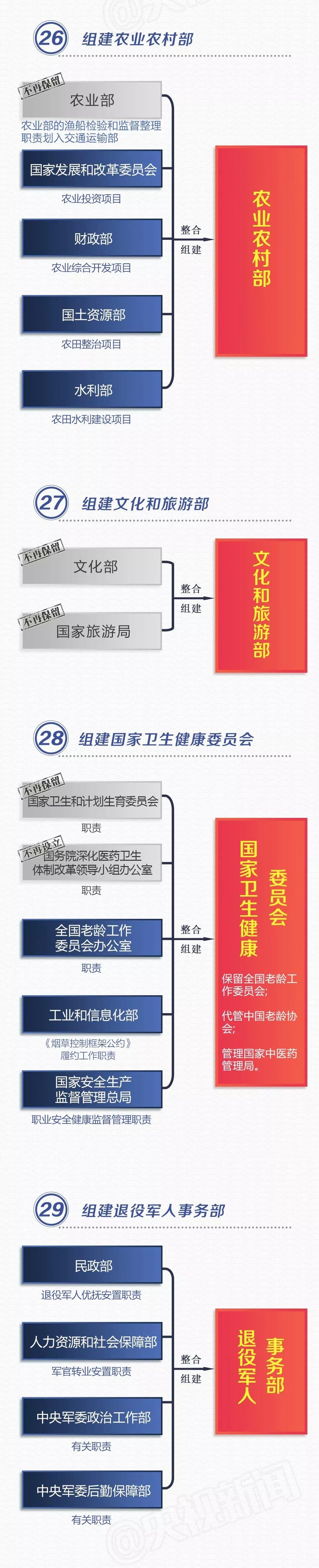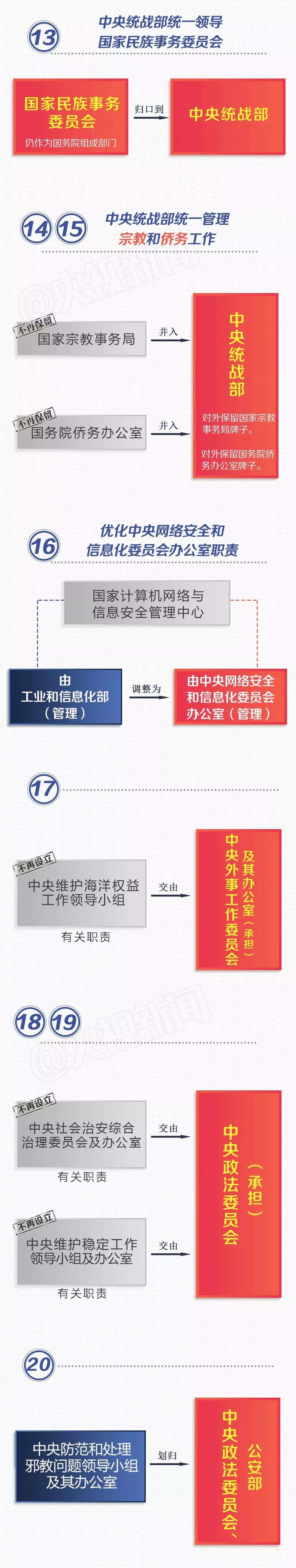 根据该方案,这次机构改革包括党、政府、人大、政协、群团、社会组织、跨军地等中央和地方各层级机构。具体调整,一张图看懂↓